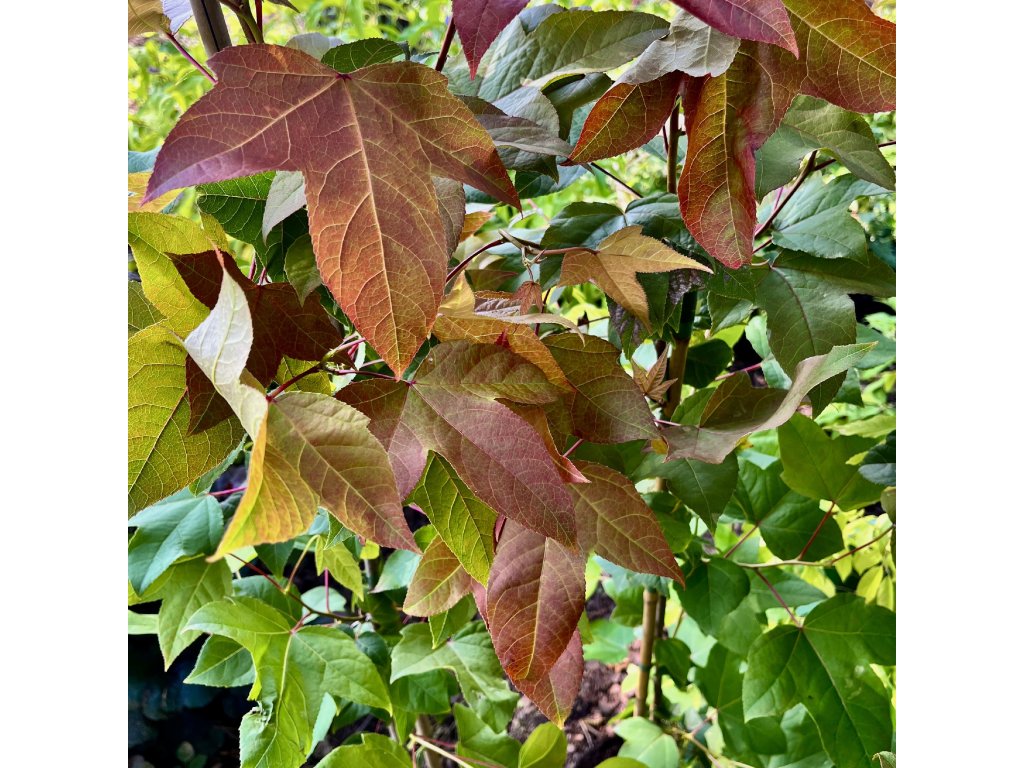 ambroň čínská lat. Liquidambar acalycina podzimní dominanta zahrady