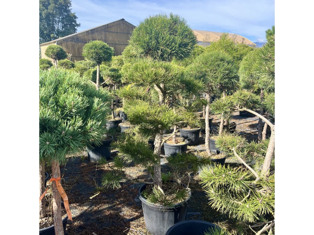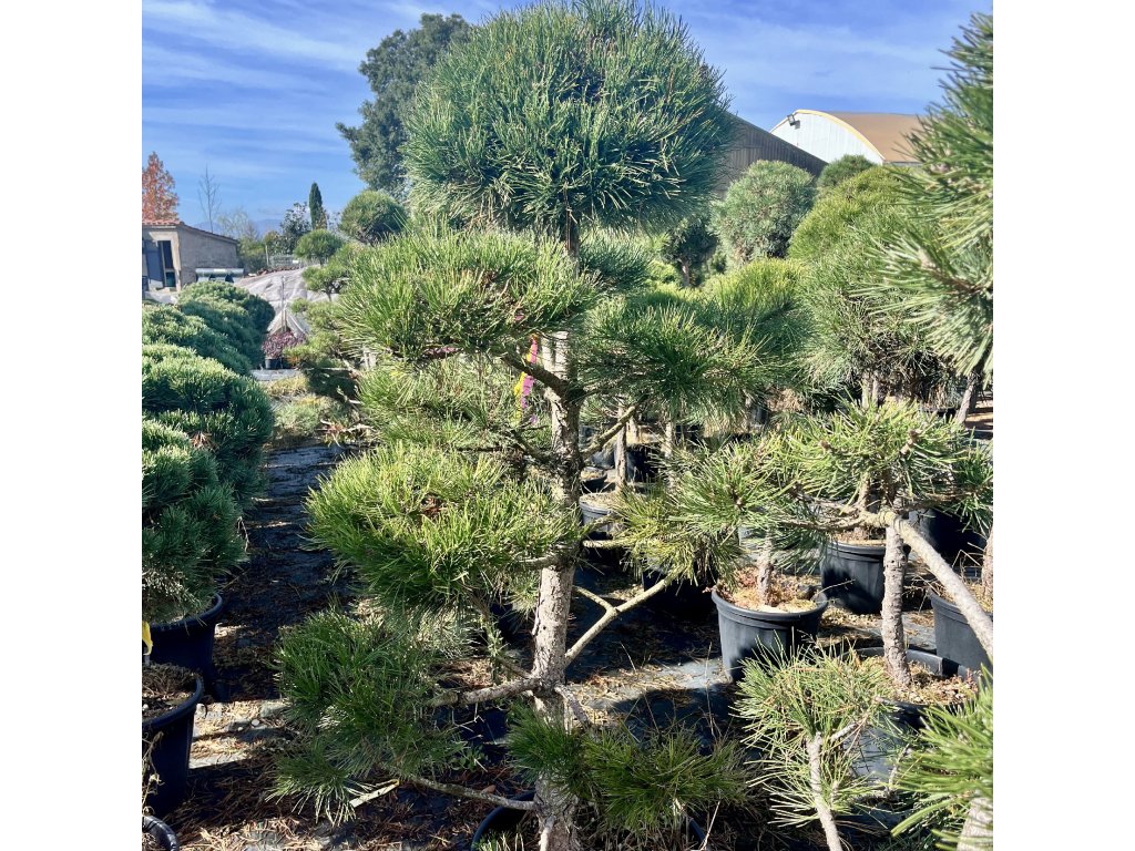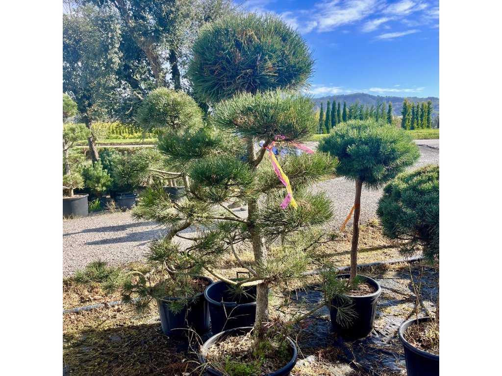 Tvarovaná borovice černá s několika kulovitými „pompony“ jehličí. Plně mrazuvzdorná, nenáročná, ideální solitéra do moderních i japonsky laděných zahrad.
