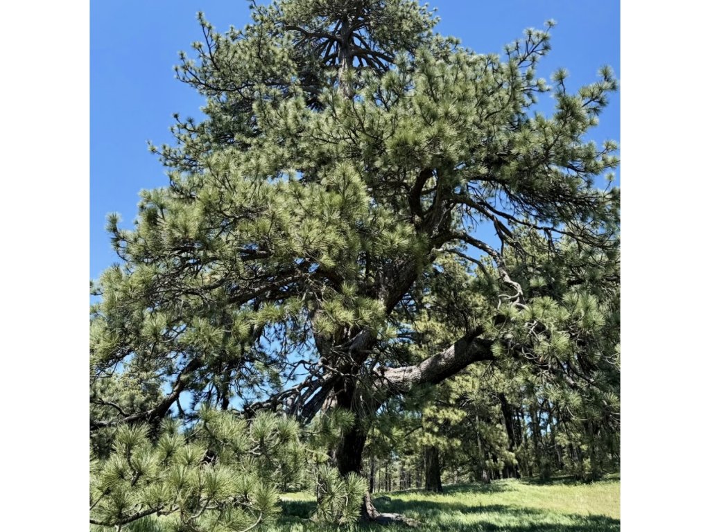 Borovice těžká (Pinus ponderosa) – mohutný severoamerický jehličnan odolný vůči suchu i mrazu, s dlouhými jehlicemi a aromatickou popraskanou kůrou.