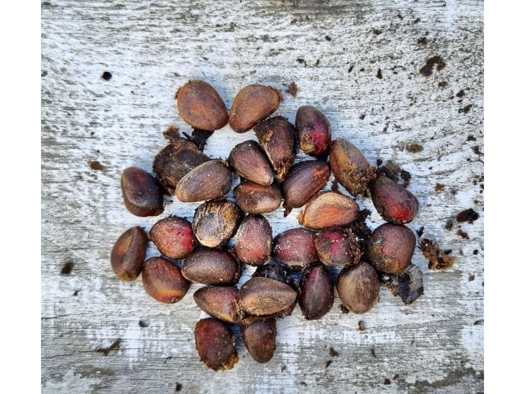 Strom produkuje malé kulaté šišky, které jsou načervenalé až hnědé barvy. Uvnitř šišek se pak ukrývají jedlá semena! Ta jsou velmi lahodná. Jejich chuť je jemně oříšková s nádechem citrusové svěžesti.