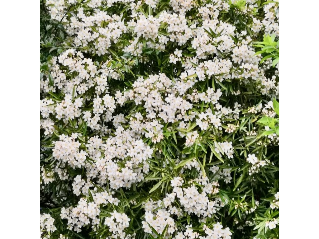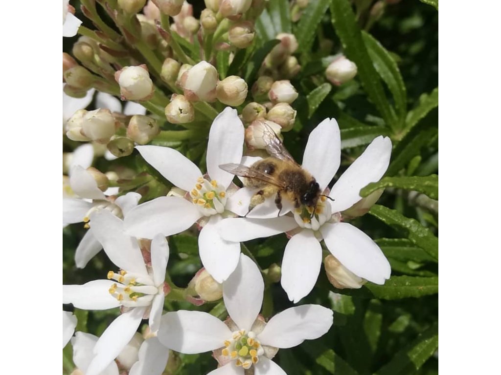 Choisya 'Aztec Pearl' je elegantní stálezelený keř s jemně dělenými listy a bílými květy s růžovým nádechem, které intenzivně voní po pomerančových květech. Kvete bohatě na jaře a často i znovu koncem léta. Hustý habitus a lesklé aromatické olistění z něj dělají efektní prvek po celý rok.