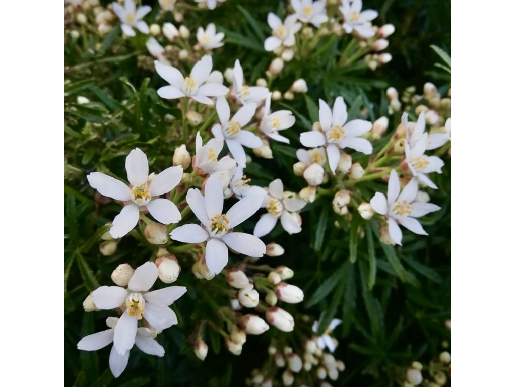 Choisya 'Aztec Pearl' je stálezelený keř s vonnými bílými květy a jemně dělenými listy. Snáší mráz až –23 °C a kvete i dvakrát ročně.