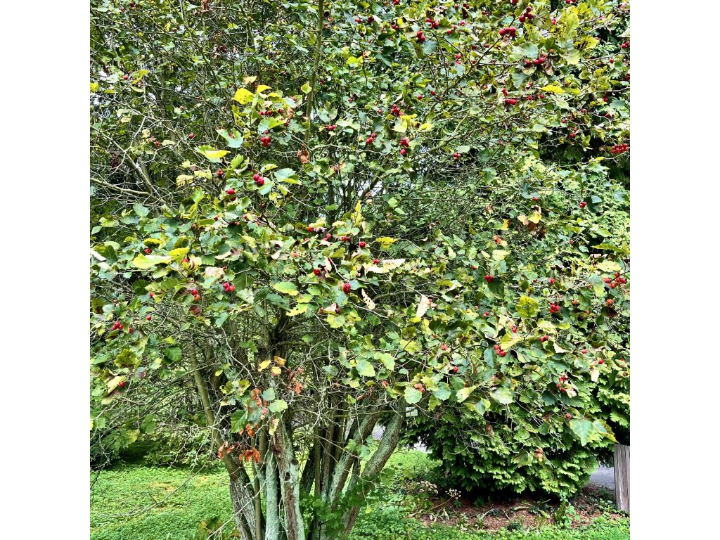 Menší strom/větší keř (5–8 m) se silnými trny a velkými, chutnými červenými plody. Pochází ze severovýchodní Severní Ameriky.