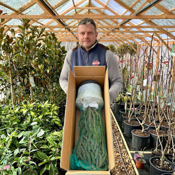 Každou zásilku balíme s maximální ohleduplností vůči přepravované rostlině. Naše balení zajistí, že rostliny budou pevně a bezpečně upevněny tak, aby nedošlo k jejich polámání nebo k vysypání zeminy během přepravy. Balíme do pevných kartonových krabic z pětivrstvé lepenky. Rostliny jsou vždy pevně fixovány ke kartonu. Každá větší rostlina / stromek pro paletovou dopravu je nejprve umístěna do konstrukce, která spolehlivě zabrání poškození při manipulaci i samotné dopravě.