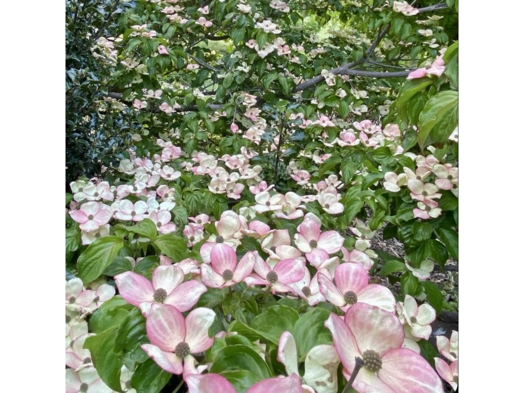 dřín japonský ´Pink Tetra´ lat. Cornus kousa kompaktní růžově kvetoucí dřín do menší zahrady
