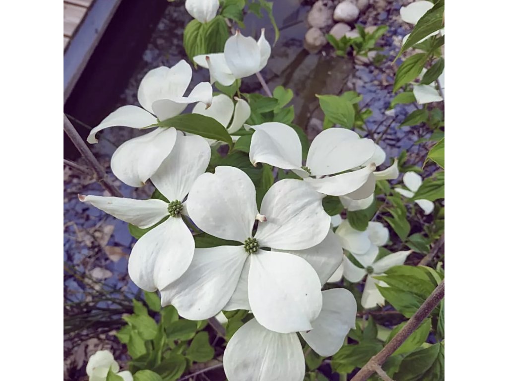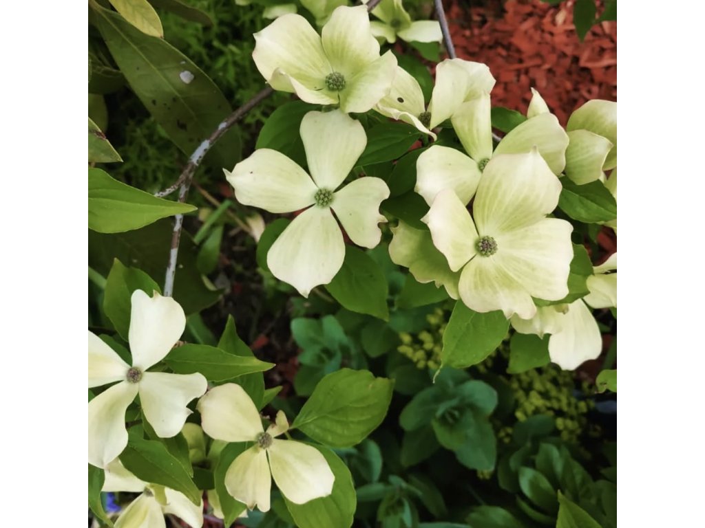- Květ tvoří listeny: velké, krémově bílé, hvězdicovité; kvetení obvykle o něco později než u C. florida.
