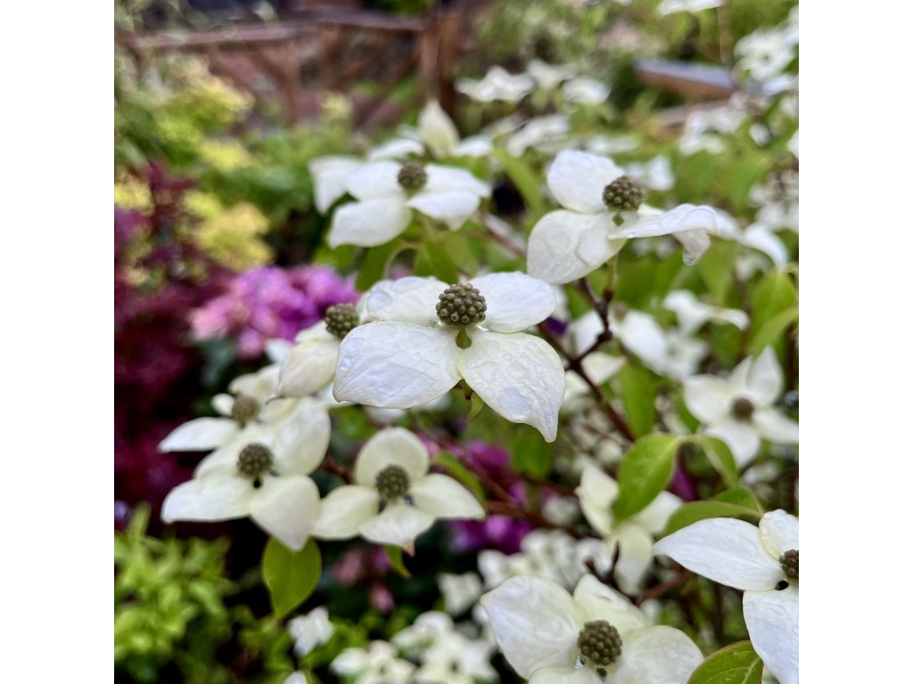 Cornus × rutgeriensis ‘Stardust’ ´– kompaktní hybrid s hvězdicovitými krémově bílými listeny, tvořící pocit obřích pseudo-květů a podzimním vínovým zbarvením. Ideální solitéra do menších zahrad.