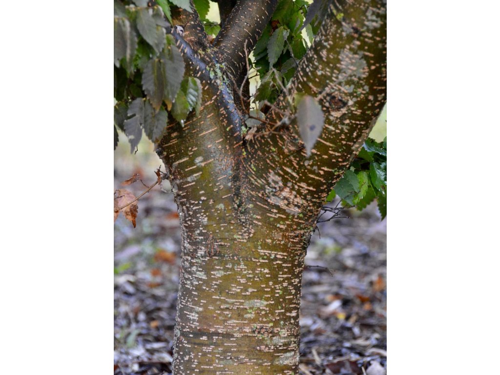 Má pravidelnou kulovitou korunu a tmavě zelené, lesklé listy s pilovitými okraji, které na podzim získávají nádherné žluté, oranžové a červené odstíny. Listy jsou hluboce žilkované a tvarem trochu připomínají listy břízy.