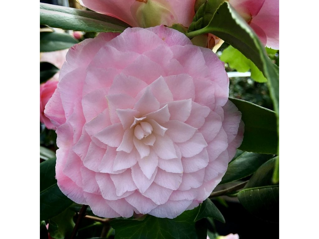 kamélie japonská ´Nuccio´s Pearl´ lat. Camellia japonica stálezelený keř s jemně růžovými plnými květy