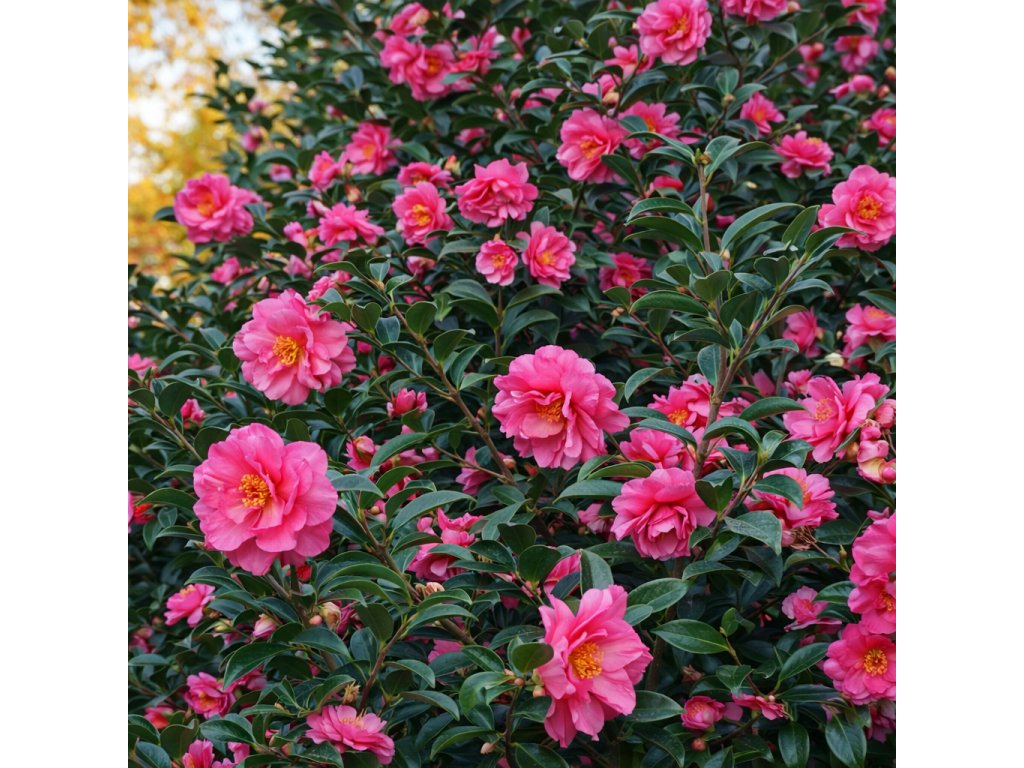 kamélie sasanqua ´Bonanza´ lat. Camellia sasanqua stálezelený keř kvetoucí na podzim
