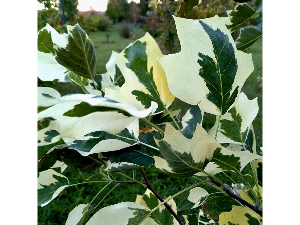 Liliovník tulipánokvětý ´Snow Bird´ lat. Liriodendron tulipifera syn. Lyriovník Panašovaný liliovník s krémově lemovanými listy a sbírkovou hodnotou