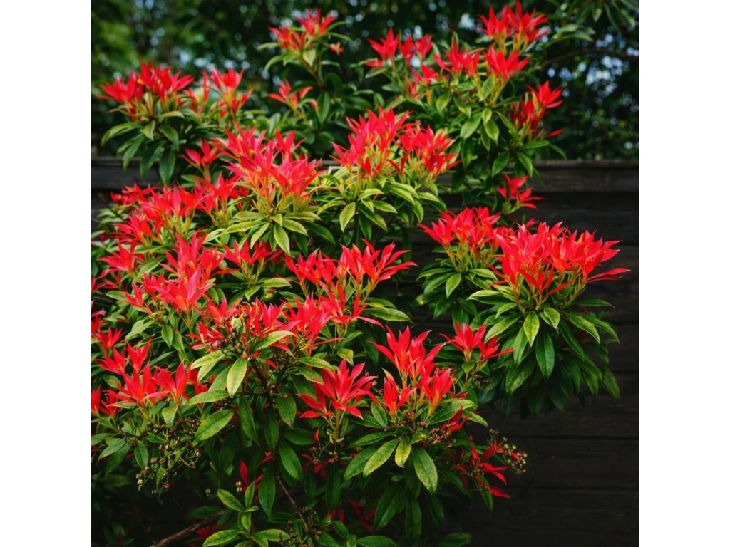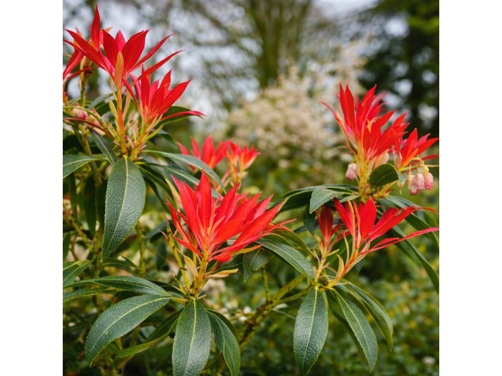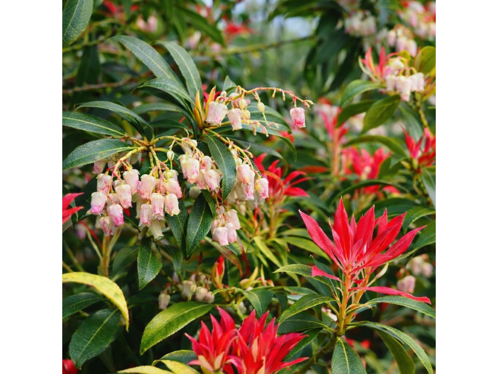 pieris japonský ´Forest Flame´ lat. Pieris japonice Stálezelený keř s ohnivě červeným jarním rašením