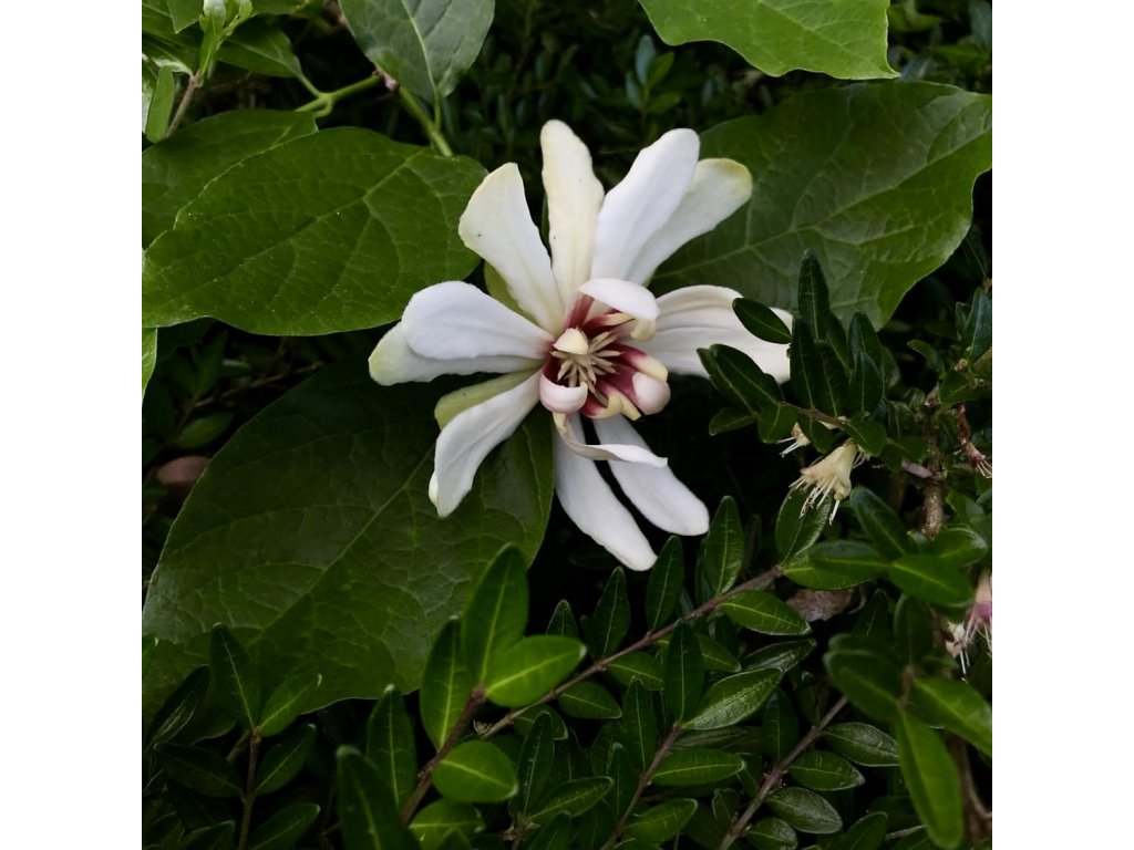 sazaník Raulstonův ´Venus´ lat. Calycantus x raulstonii voňavý okrasný keř s velkými bílými květy